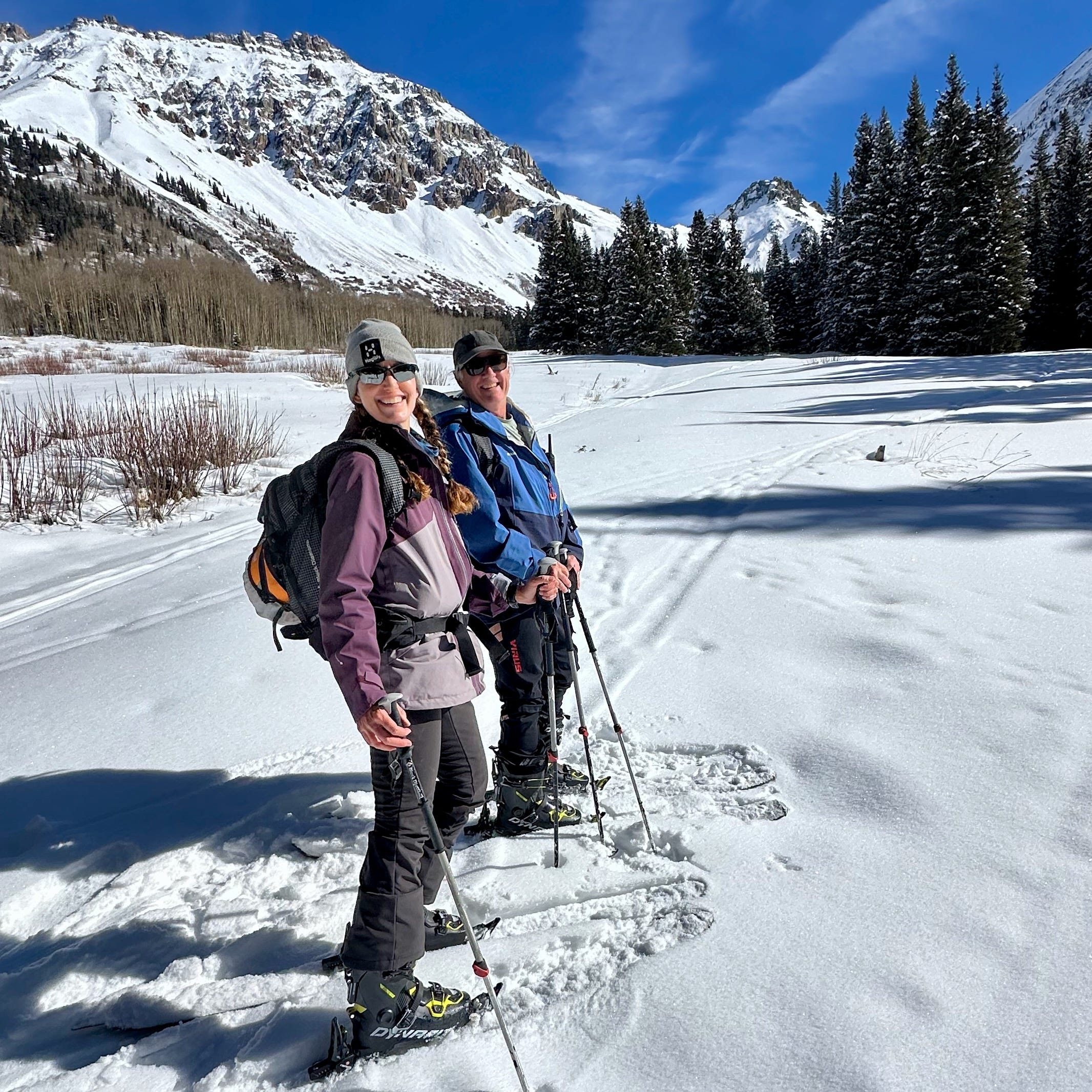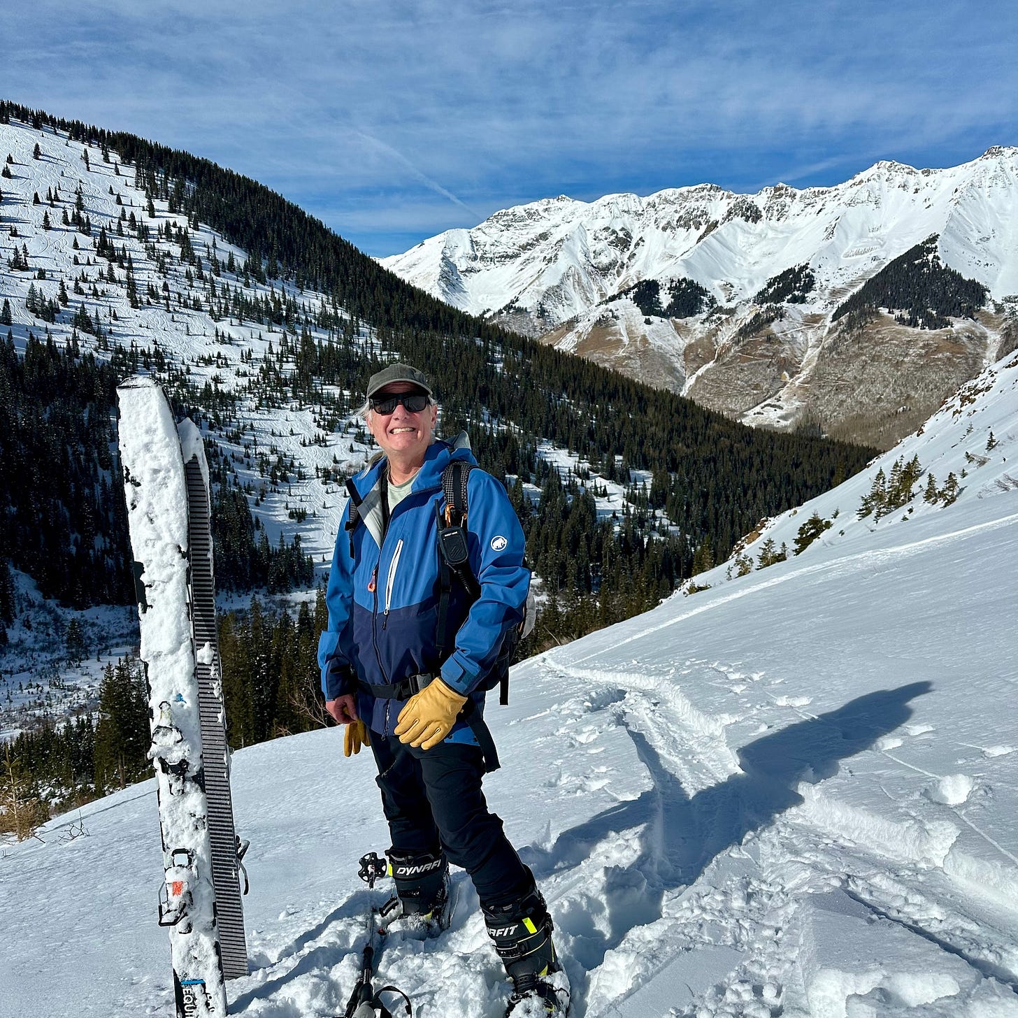 After getting all the rental gear in order, we made our way to nearby Ophir to skin up a canyon that I know well in summertime. We were blessed with calm blue-sky weather, good snow from a recent storm, and relatively minimal avalanche risk.